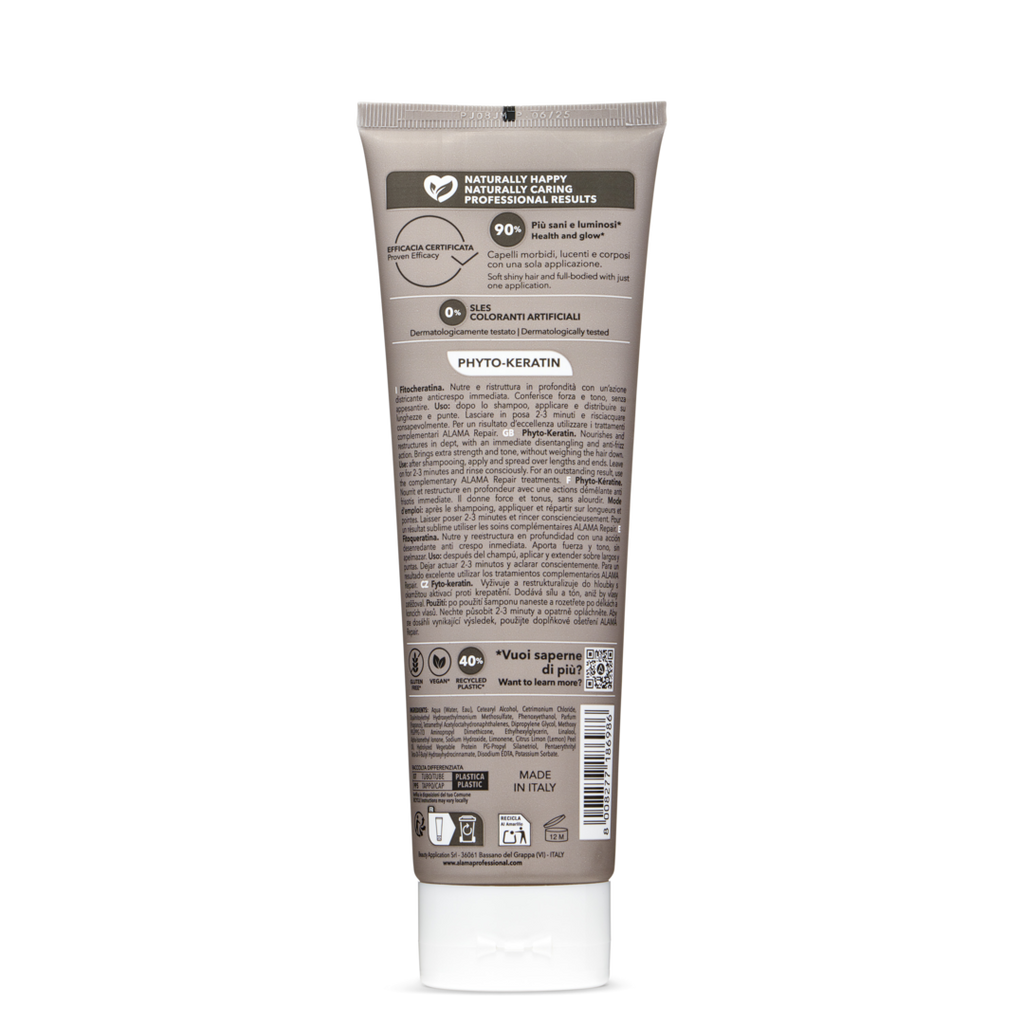 Enriched with phytokeratin, a plant-based alternative that mimics the natural keratin in hair, it works to reinforce weakened areas, improve elasticity, and bring back fullness and softness where it’s been lost.